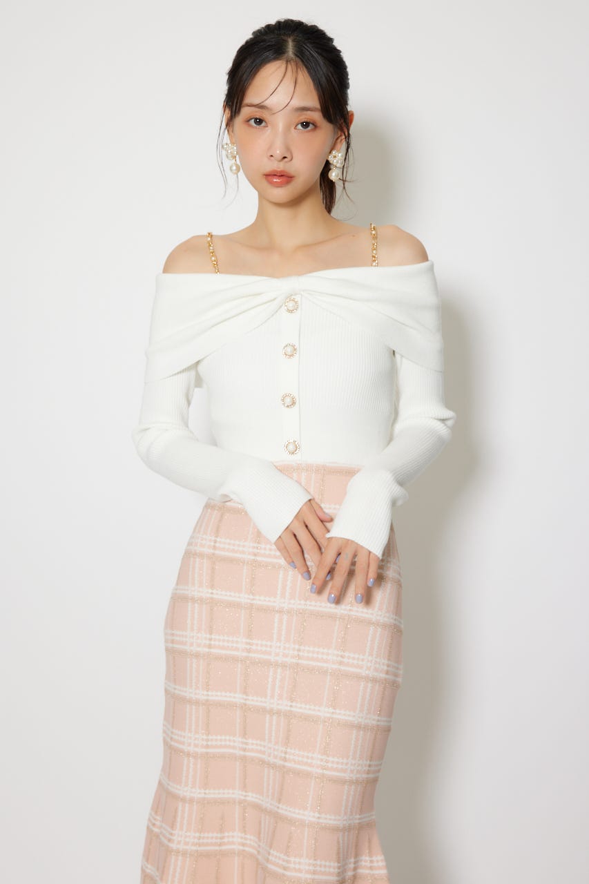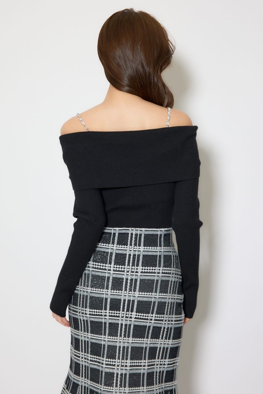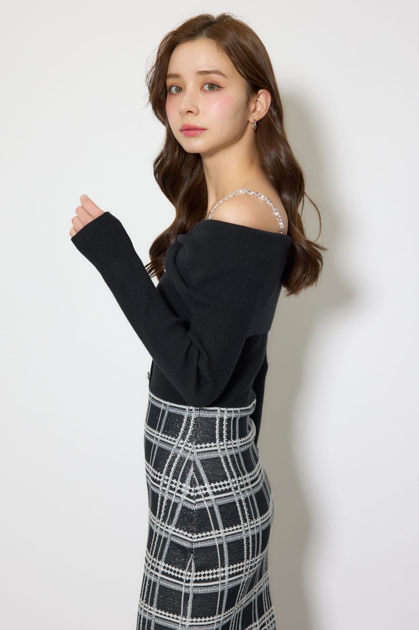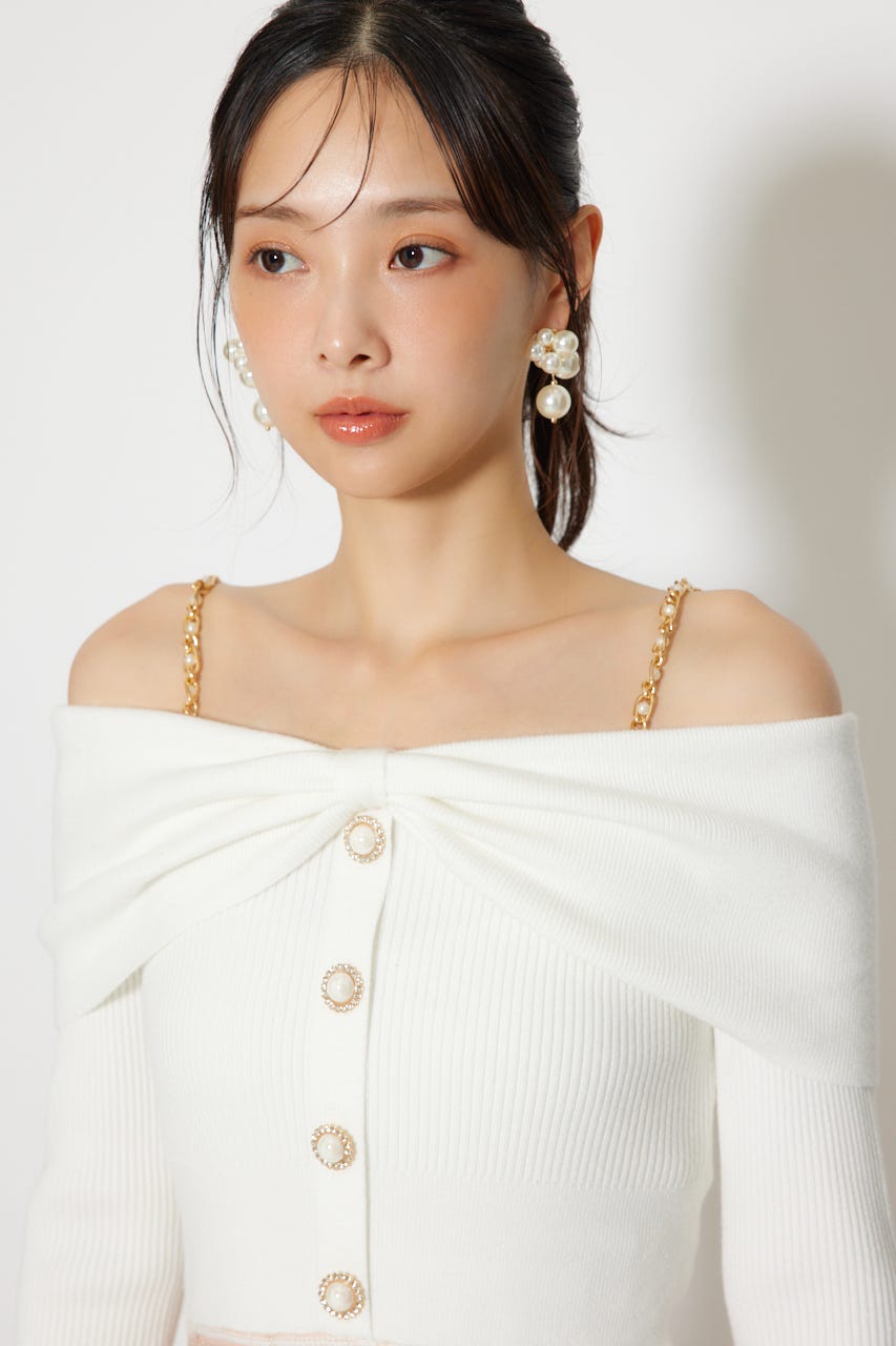 オフショルデザインで女性らしい肌見せときらっとしたショルダーチェーンが目に留まるデザインに仕上げました。