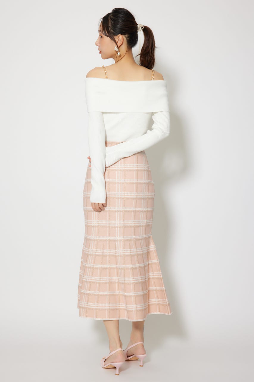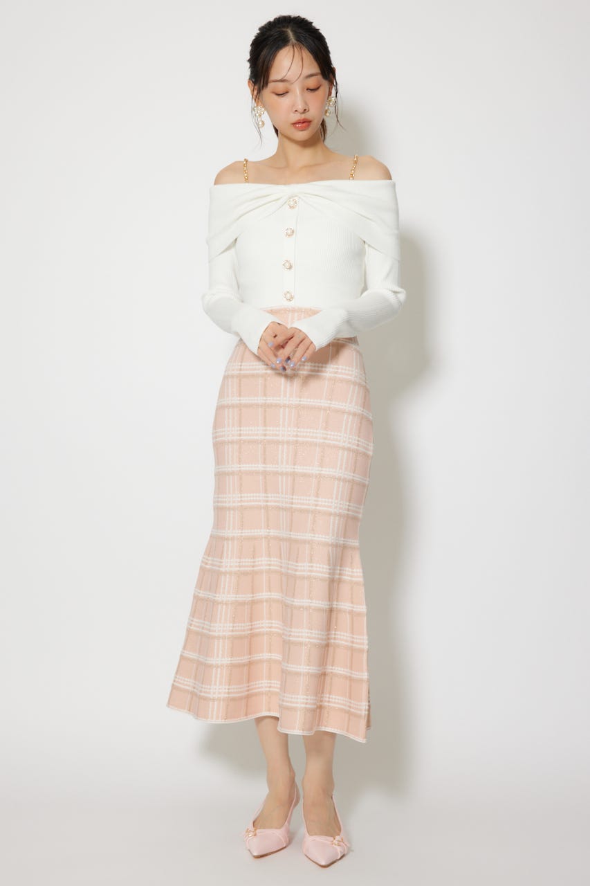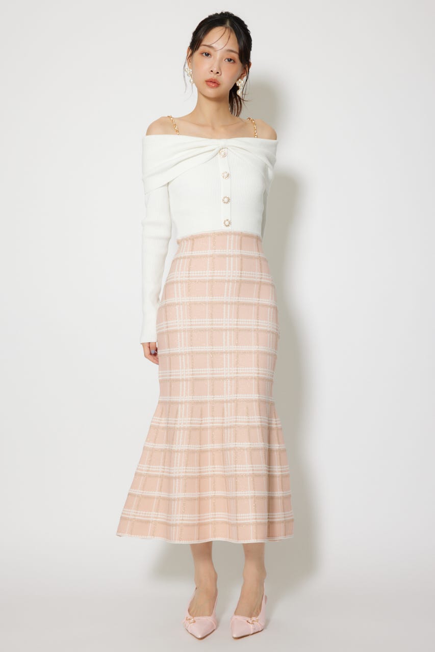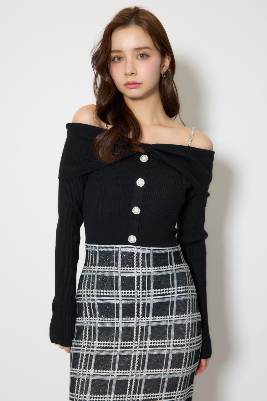 オフショルデザインで女性らしい肌見せときらっとしたショルダーチェーンが目に留まるデザインに仕上げました。