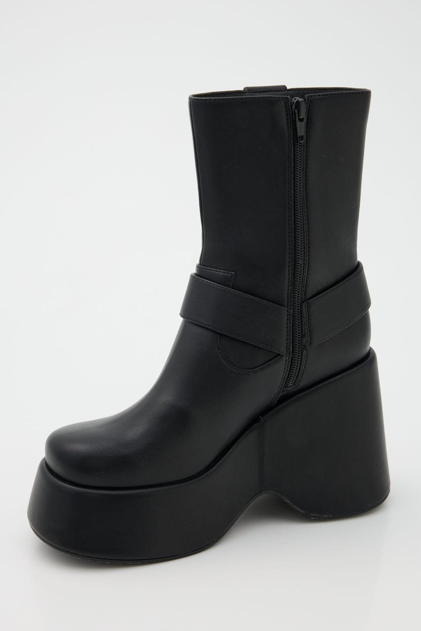 ショートブーツかつカーブブロックヒールにしたことで、パンツからスカートまで幅広く合わせられます。