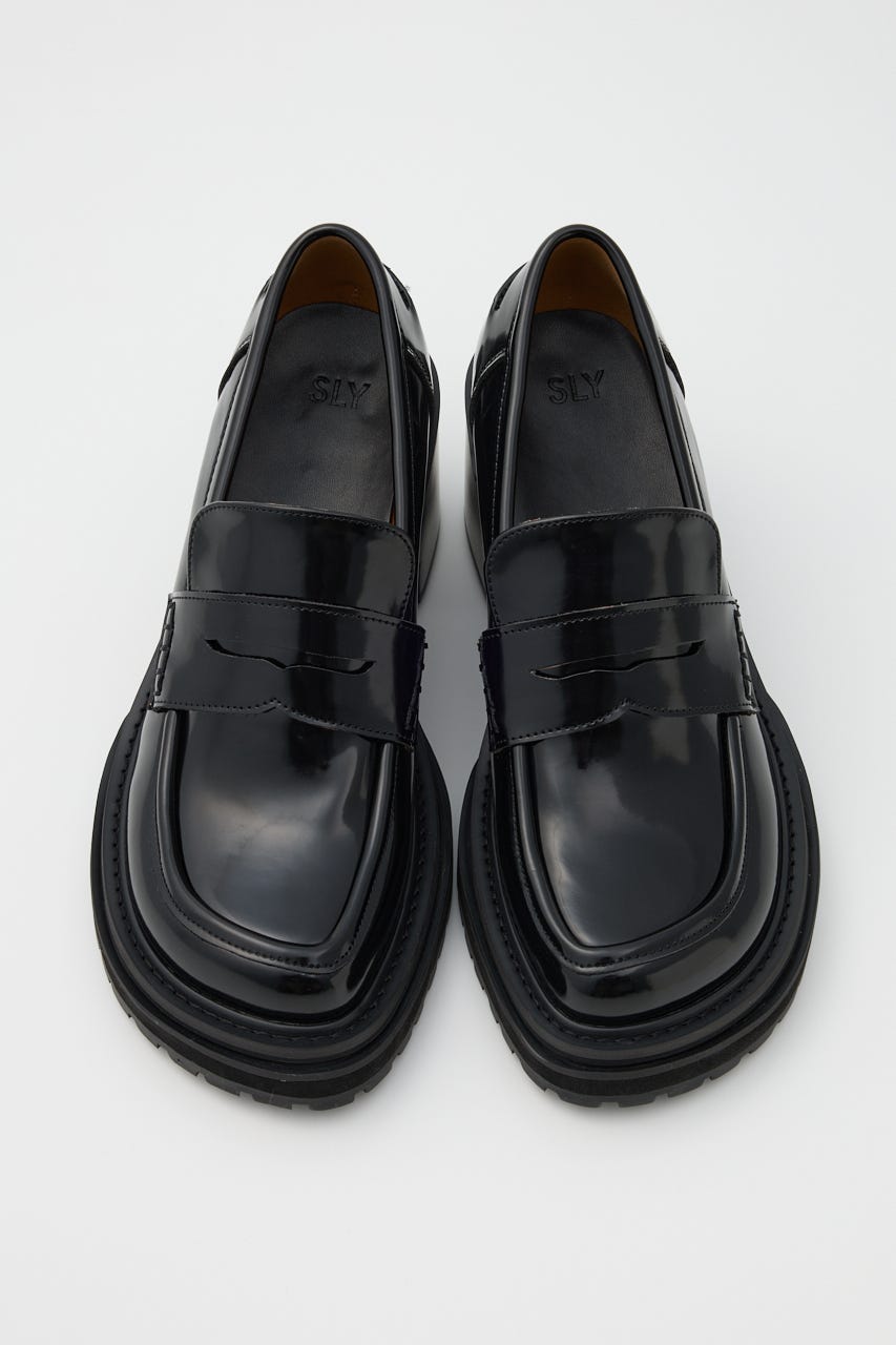 クラシックなペニーローファーを今季らしくヒールアップした万能シューズ。