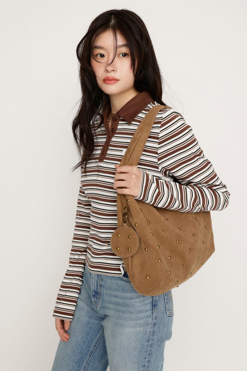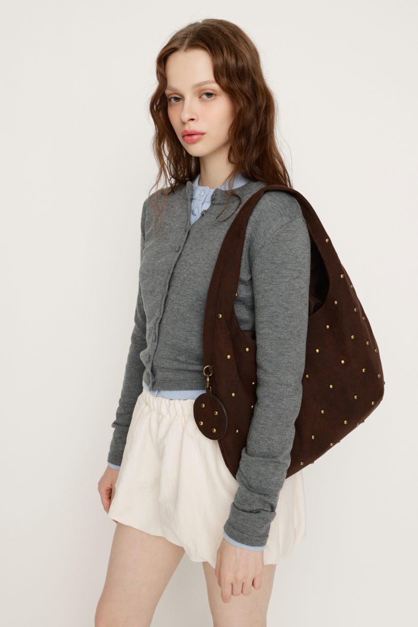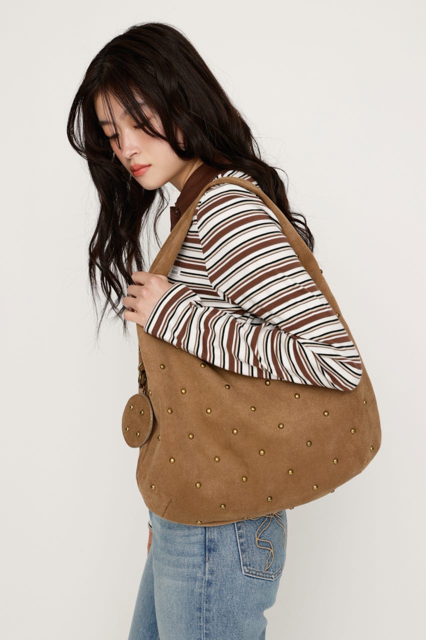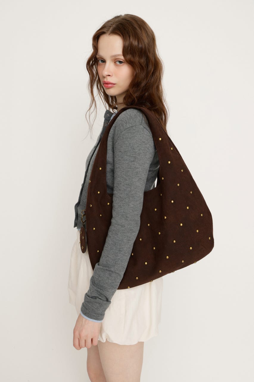コーディネートにリズムをつくるスタッズデザインがポイントのバッグ。