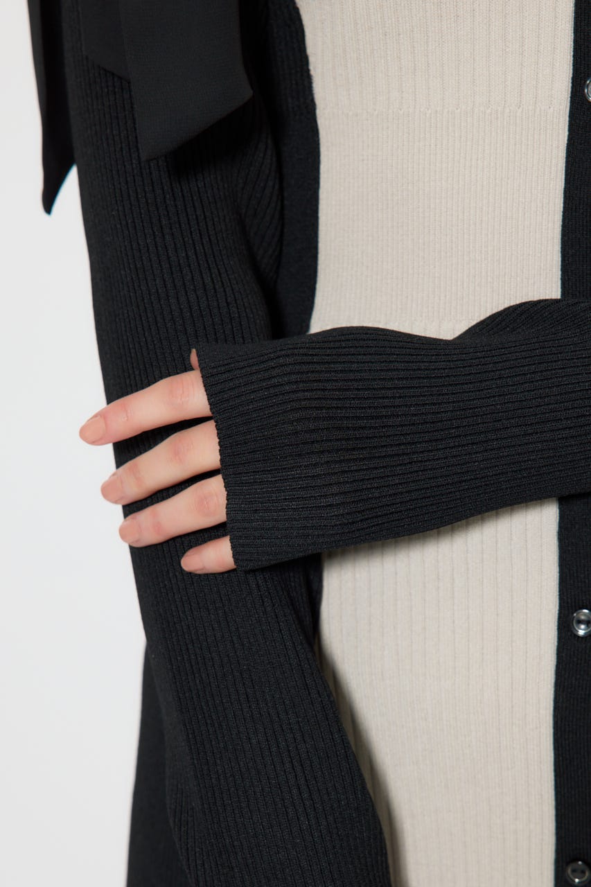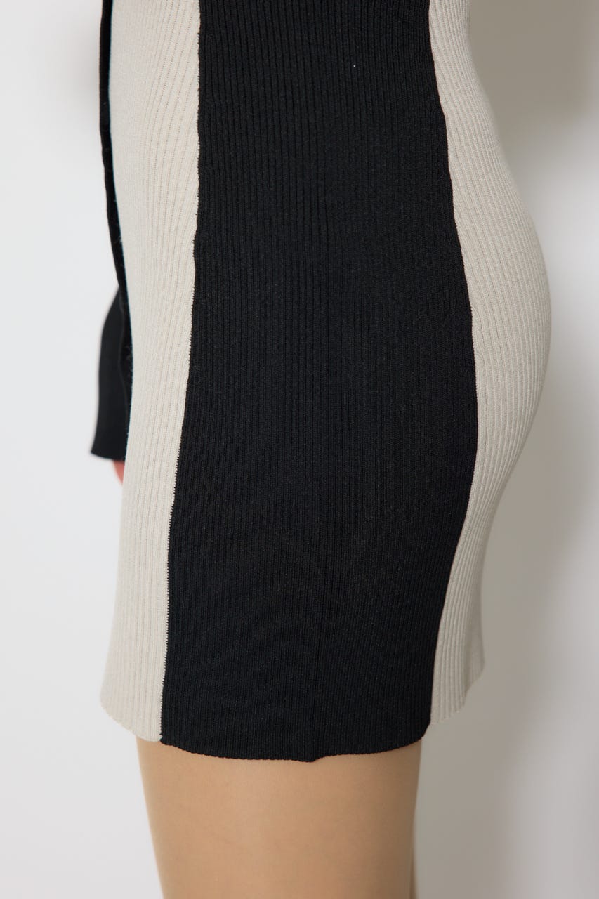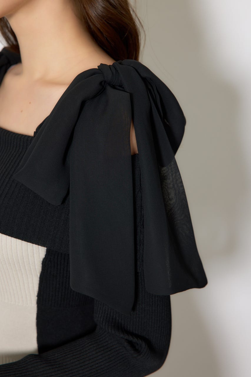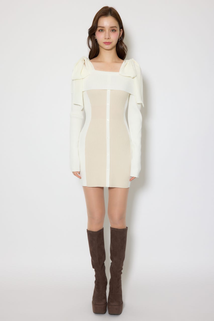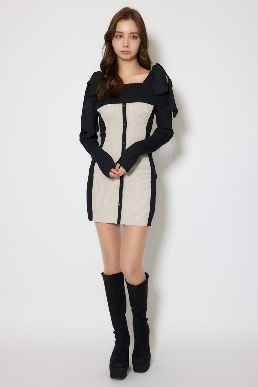 バイカラーオフショルリボンニットミニワンピース