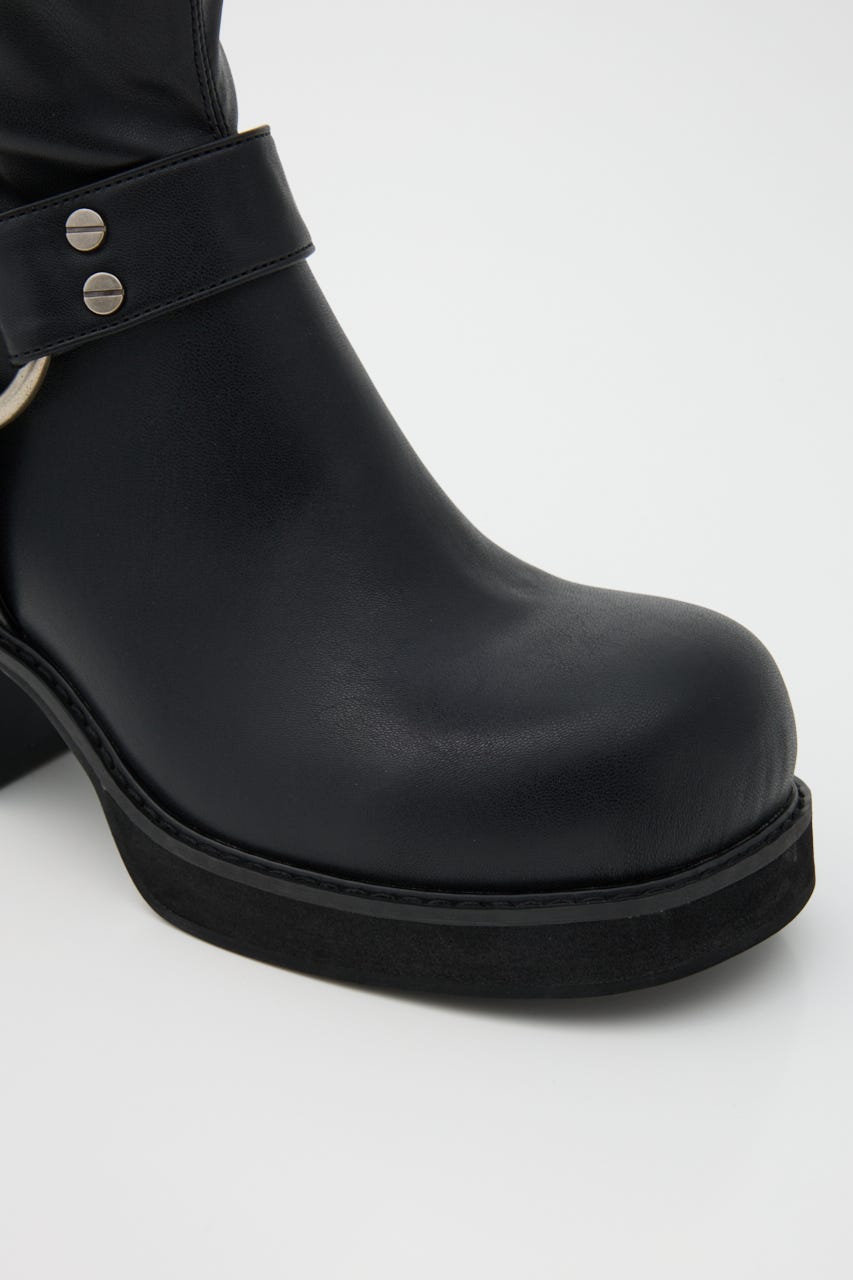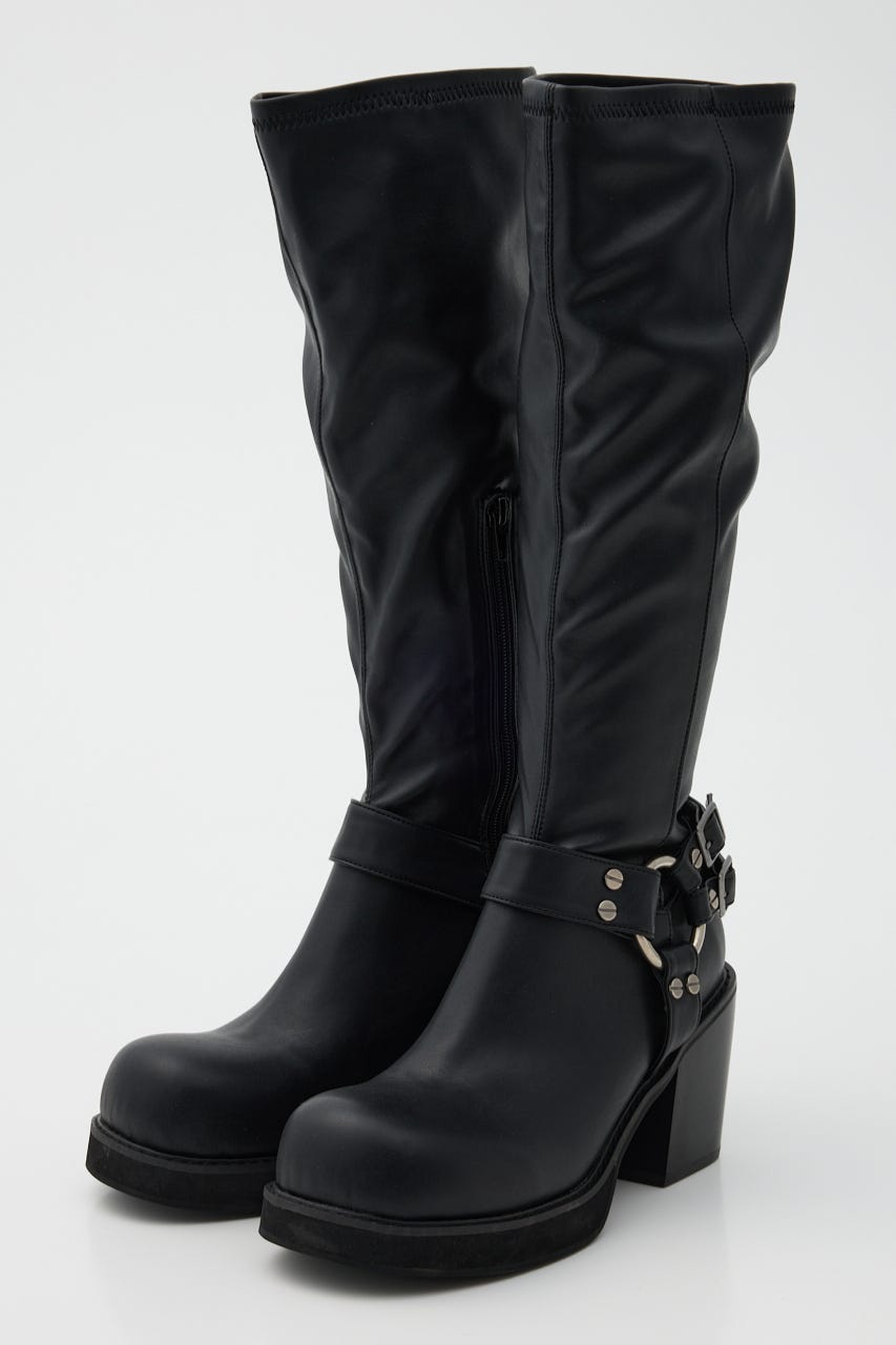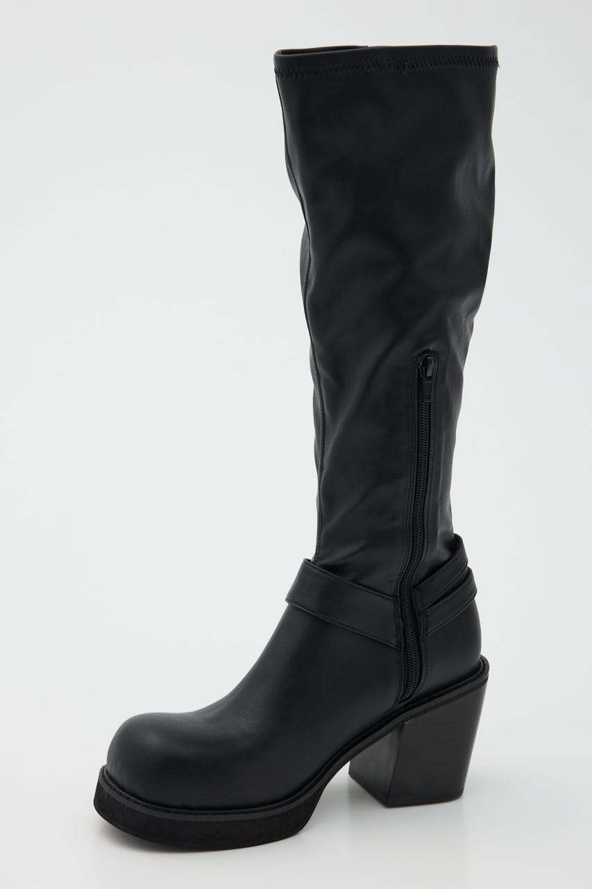 膝下丈の二ーブーツなのでミニワンピースやショートボトムスとの合わせがおすすめです。