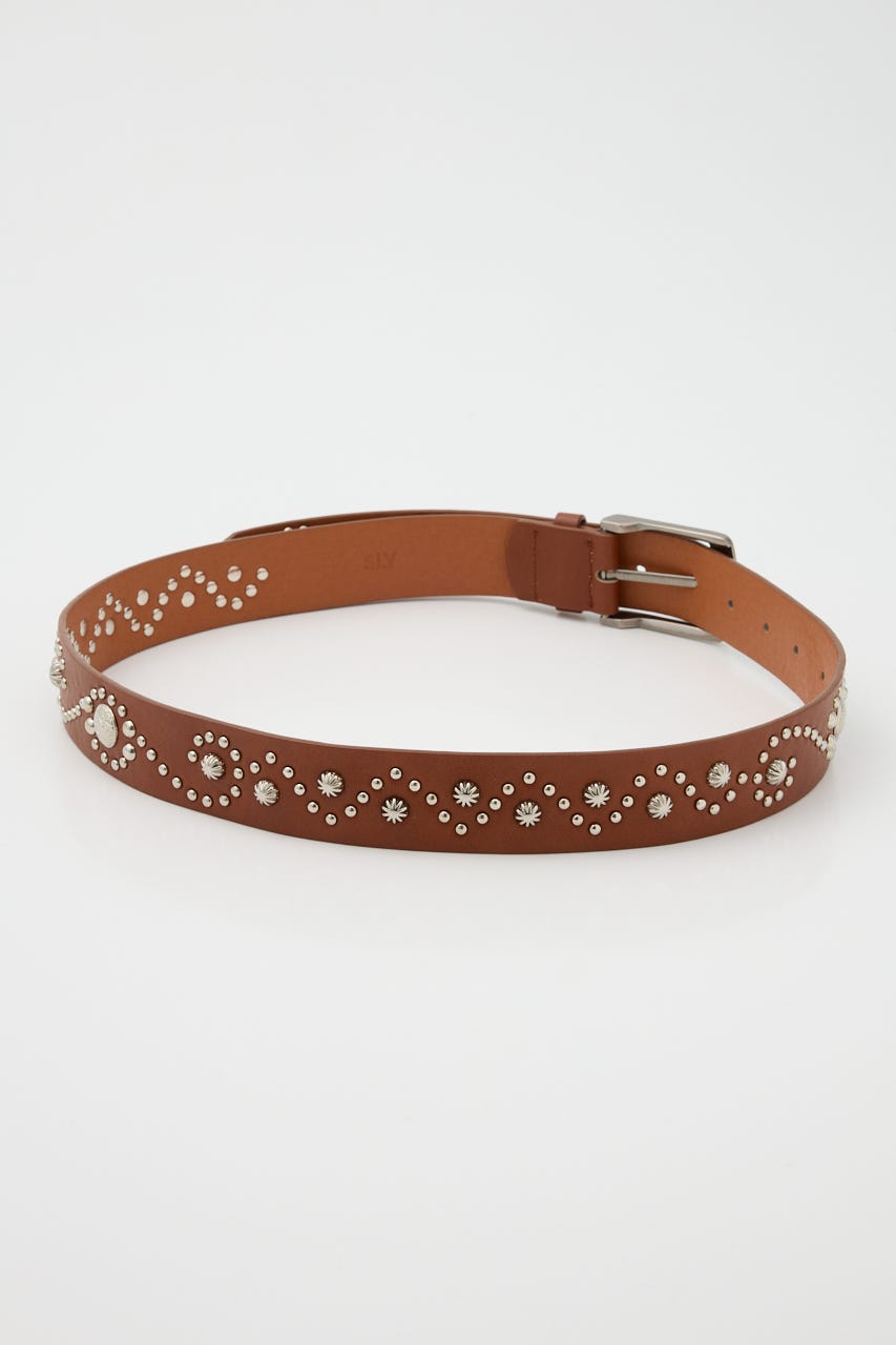 SLYオリジナルで作成したスタッズデザインが目を惹くフェイクレザーベルト。