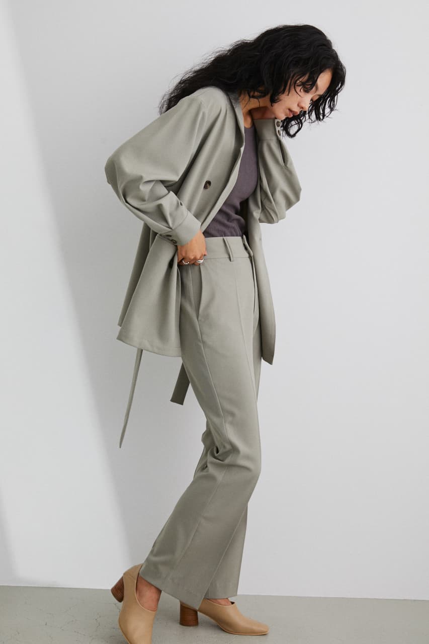 袖にはタックを入れこなれ感あるオシャレ見えセットアップに仕上げています。
