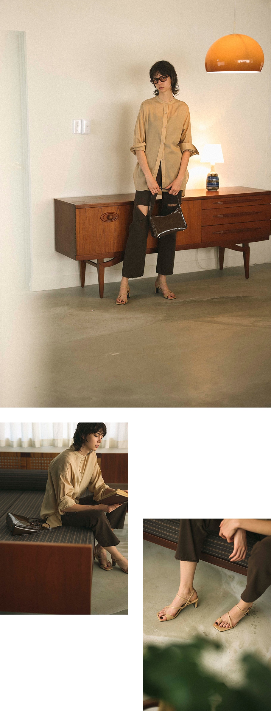 - いつもの白シャツもいいけれど、センシュアルな透け感を持つシャツでハーフパンツをリフレッシュ。 ベージュのニュートラルなムードがパンツのまじめな一面を引き出し、ヘルシーな女らしさへと昇華。