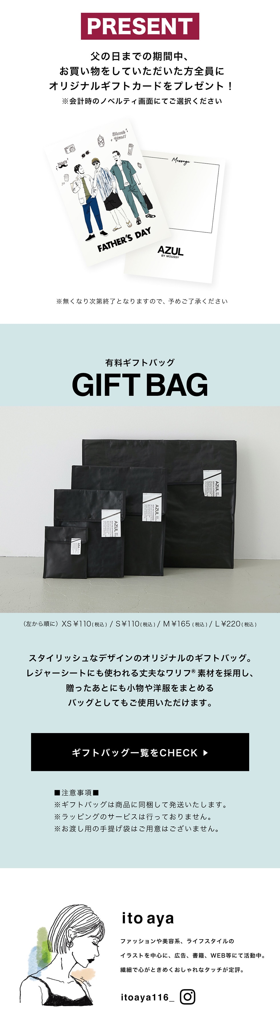 - ※6.3(金)12:00からSHEL'TTER WEB STOREにてAZUL by MOUSSY の対象商品を1点以上購入して頂いたお客様に「ギフトカード」をプレゼント致します。