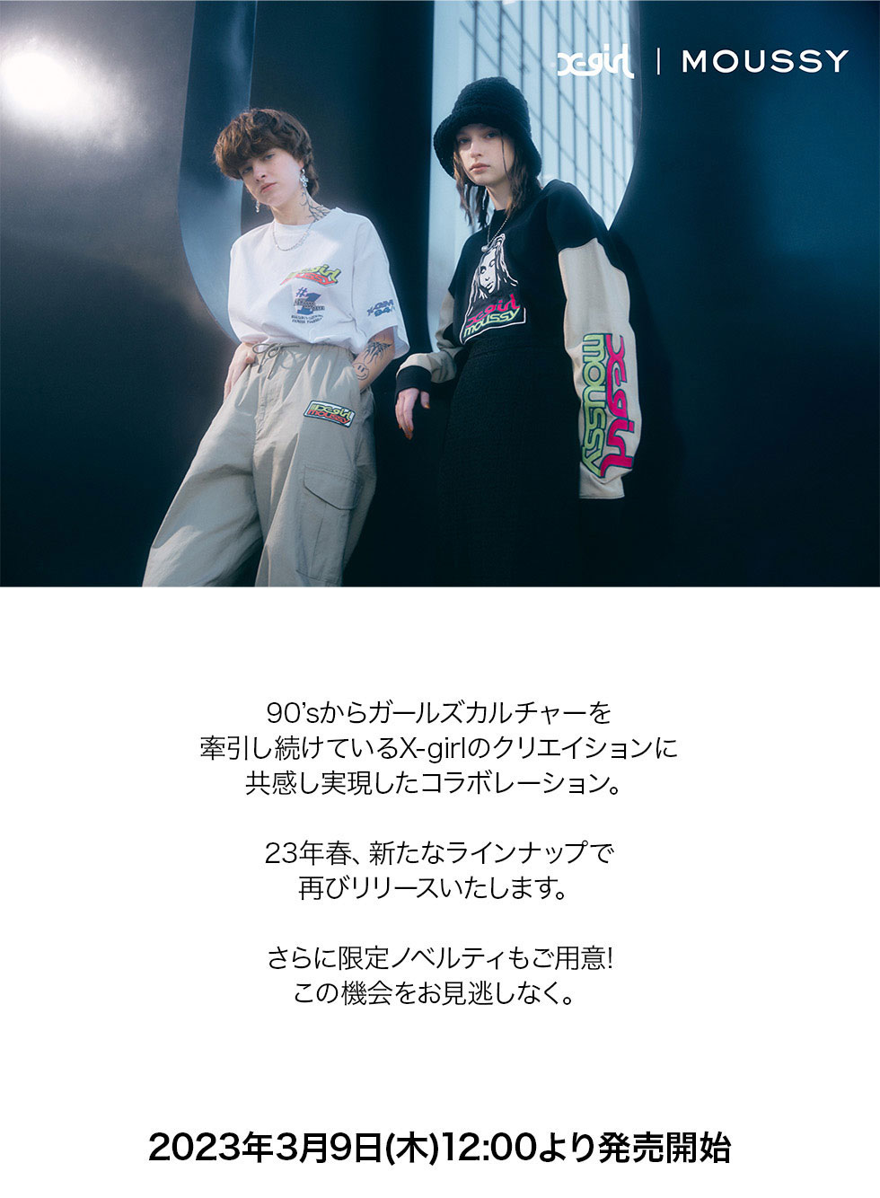 - ※3.9(木)12:00からSHEL'TTER WEB STOREにて MOUSSYの対象X-girlコラボアイテムを一回のご注文で、1点以上購入して頂いたお客様に「X-girl ショッピングバッグ」をプレゼント致します。