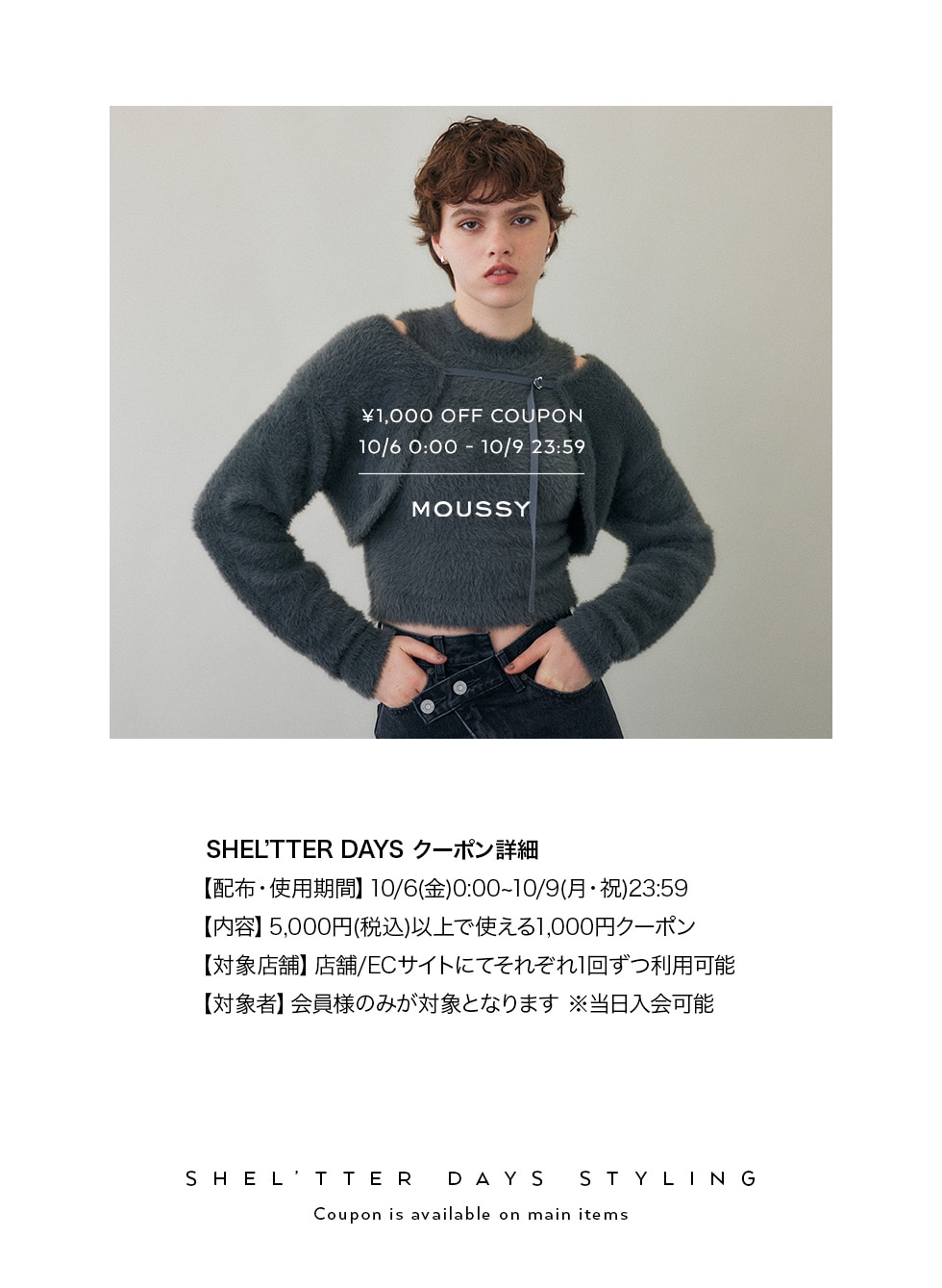 - ※クーポン対象ブランド及びSHEL’TTER PASSアプリ対応店舗でのみ使用できます。