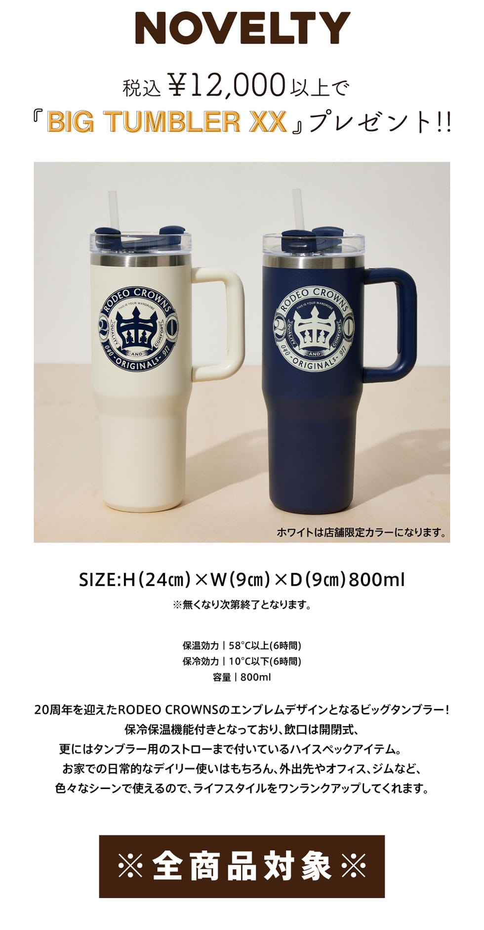 ※10.11(金)0:00からSHEL'TTER WEB STOREにてRODEO CROWNS WIDE BOWLの商品を一回のご注文で、¥12000(税込・送料/手数料別)以上購入して頂いたお客様に「BIG TUMBLER XX」をプレゼント致します。