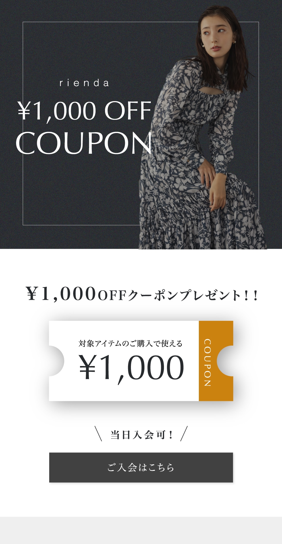 - ※rienda商品を一回のご注文で¥10,000以上(税込・送料/手数料別)以上ご購入で使用できる1000円OFFクーポンになります。