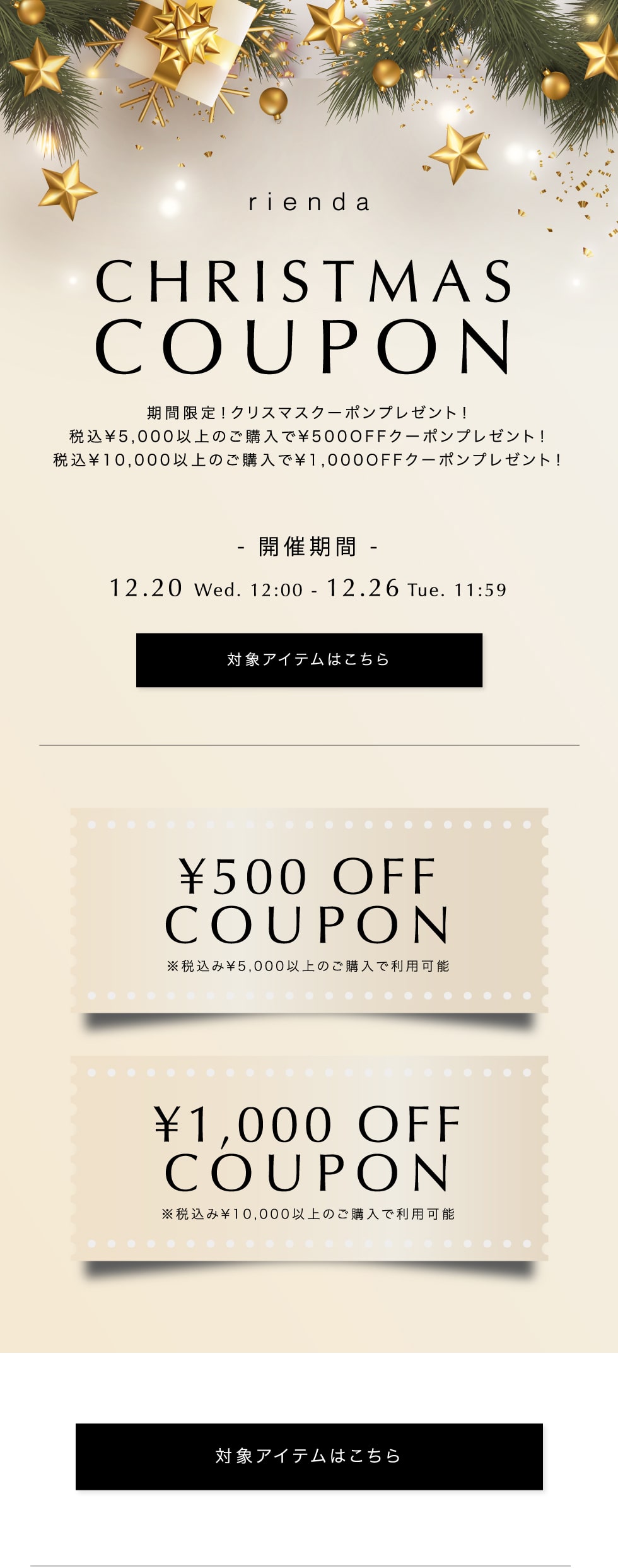 ※期間中(12/20 wed 12:00~12/26 tue 12:00)各クーポン1回ずつご利用可能です。