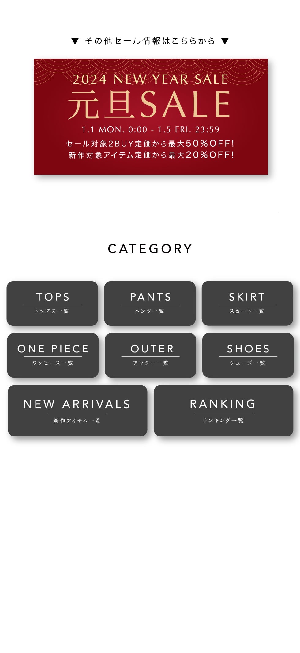 - ※セール内容は、店舗とSHEL'TTER WEBSTOREで異なる場合がございます。予めご了承ください。