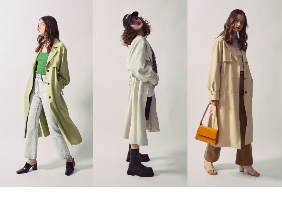 きれい目トレンチをあえてカジュアルに着こなすSLYらしいスタイリング。
