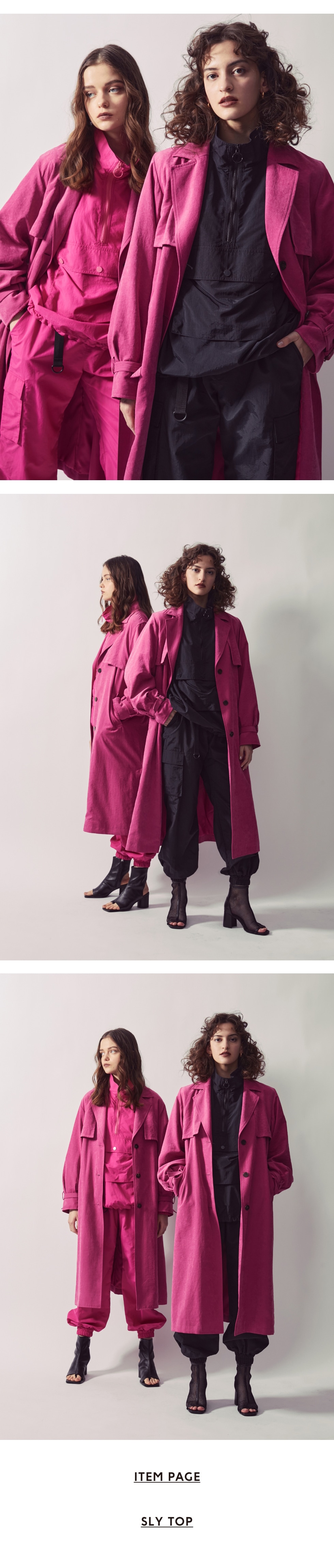 アウターが主役になるピンクはSLYには欠かせないカラーアイテム。