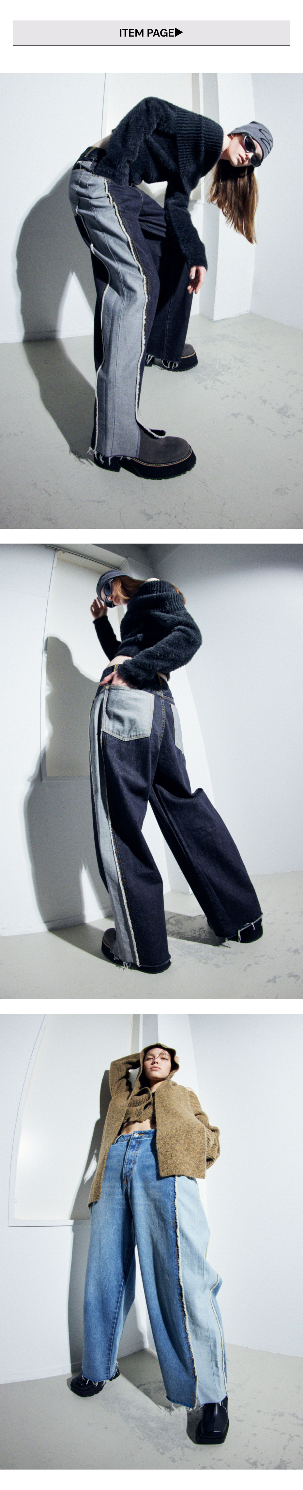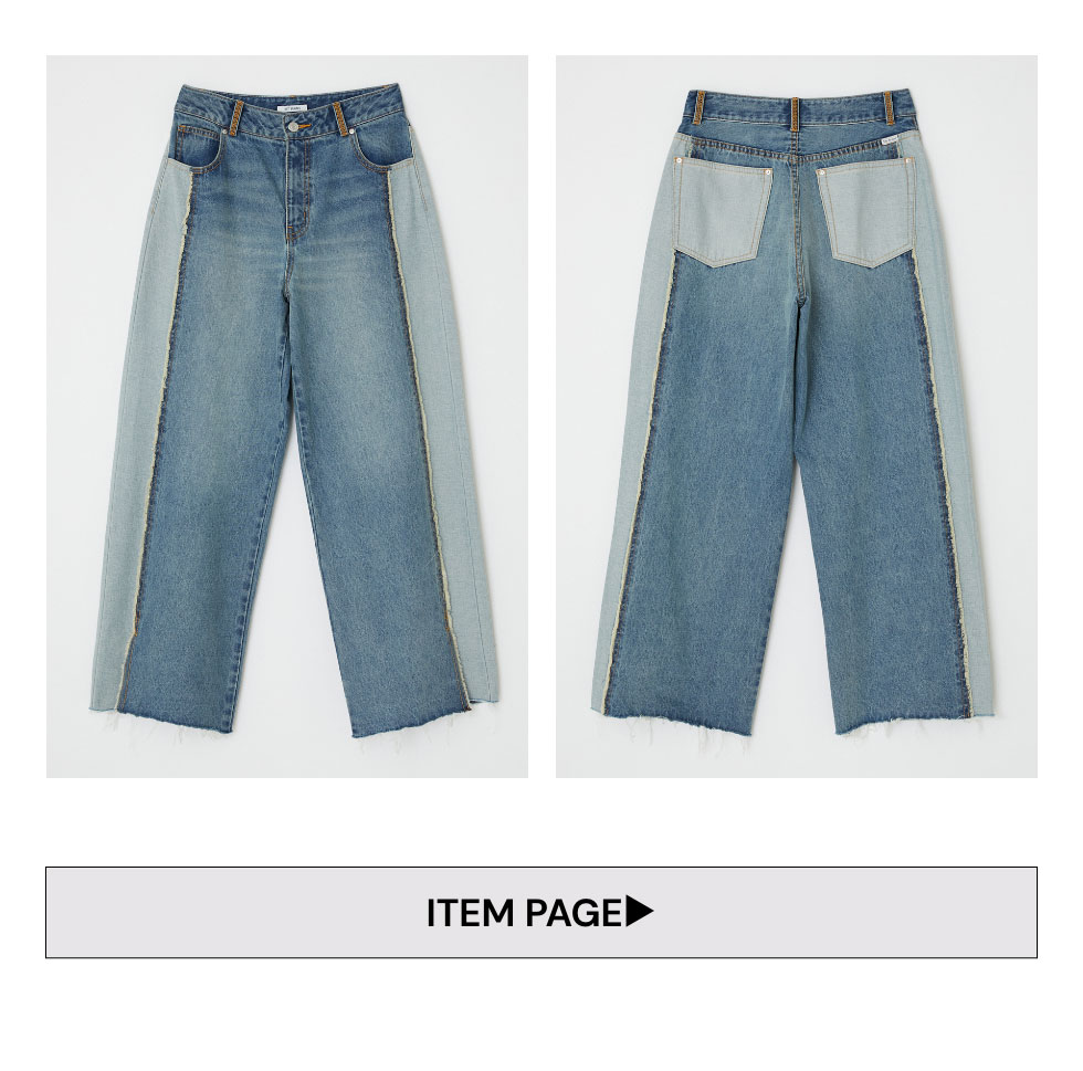 裏使いを大胆に切り替えたインサイドアウトデザインが目を惹くデニム。