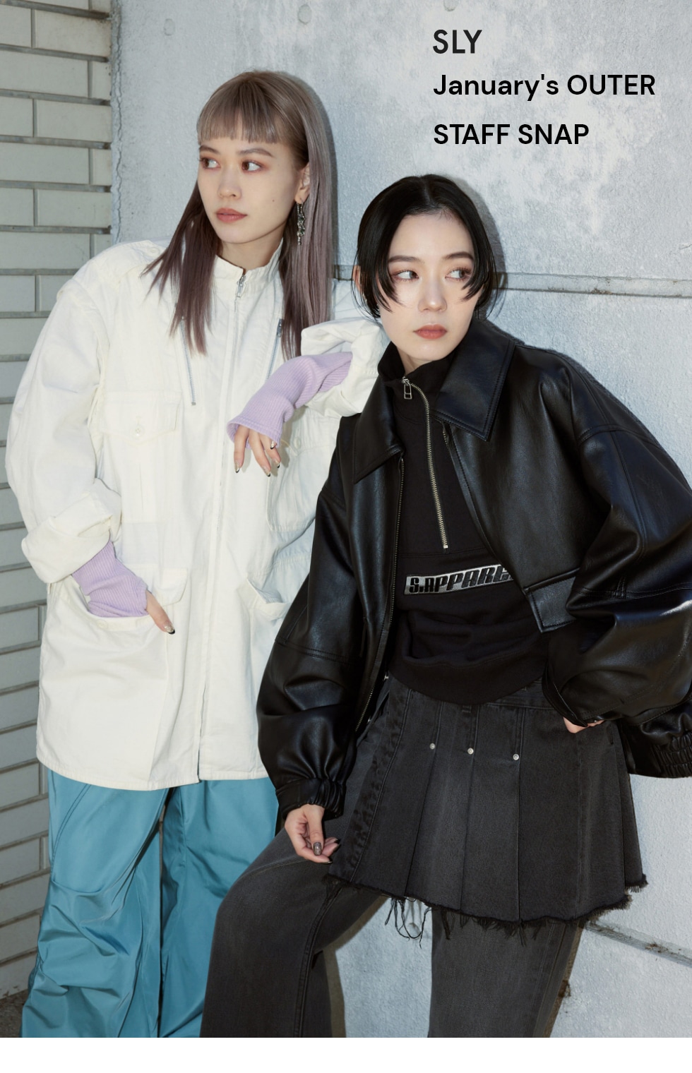 1月のSLYのアウターをPICK UP!!新作アウターはカジュアルなスタイリングからオケージョンに使えるアイテム、アウトドアシーンでも着まわしたいものなど、豊富にラインナップ。STAFF SNAPでリアルなコーディネートをチェックして、アウターコーデの参考にして。