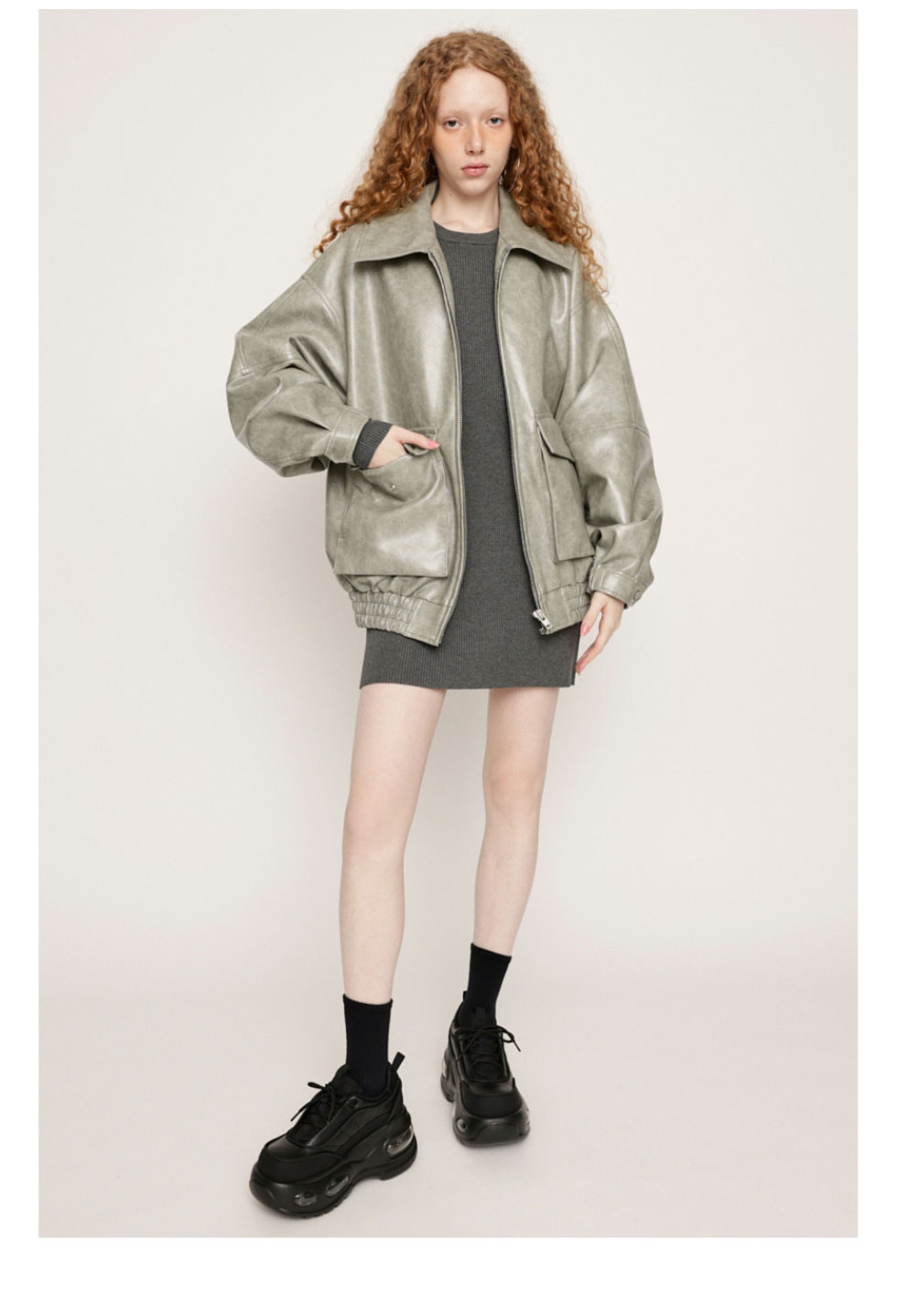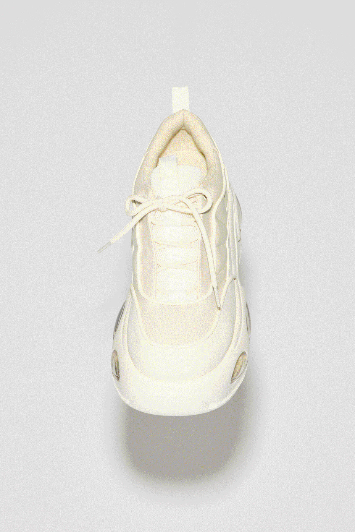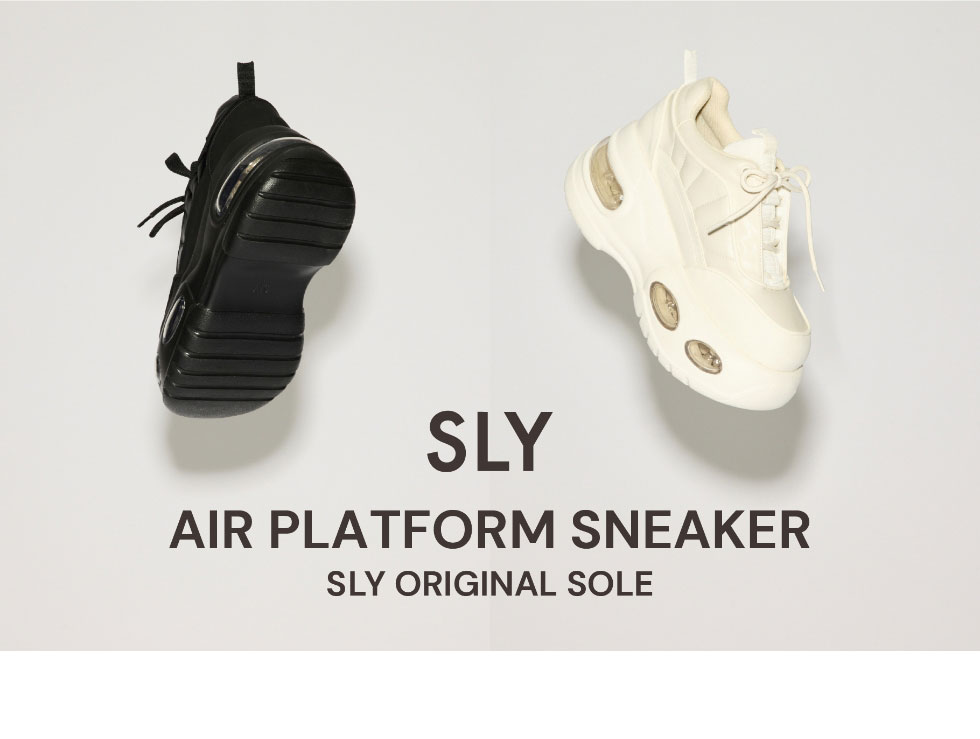 今季トレンドのエアーソールを型起こしからこだわって製作した SLYオリジナルプラットフォームスニーカー。 ヒールは8.7センチで厚みがあり、 他にはないボリューム感のあるソールに仕上げました。 アッパー部分は異素材を組み合わせることでデザインに奥行きを出し、 全体的にぷっくりと丸みのあるシルエットになっています。