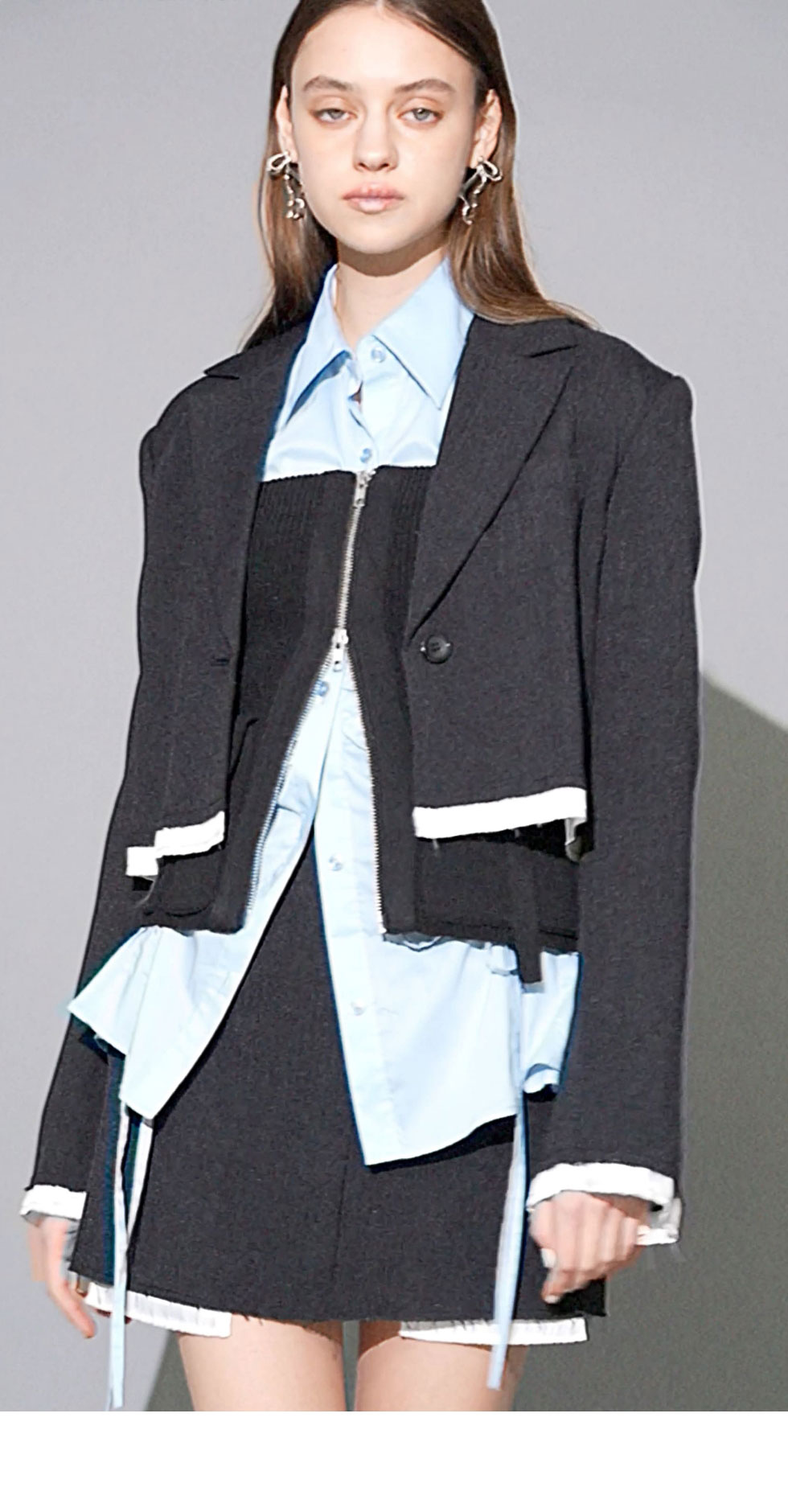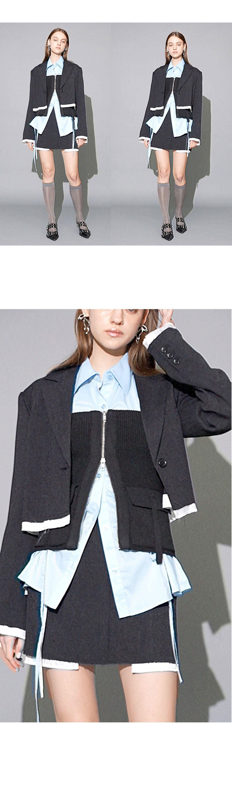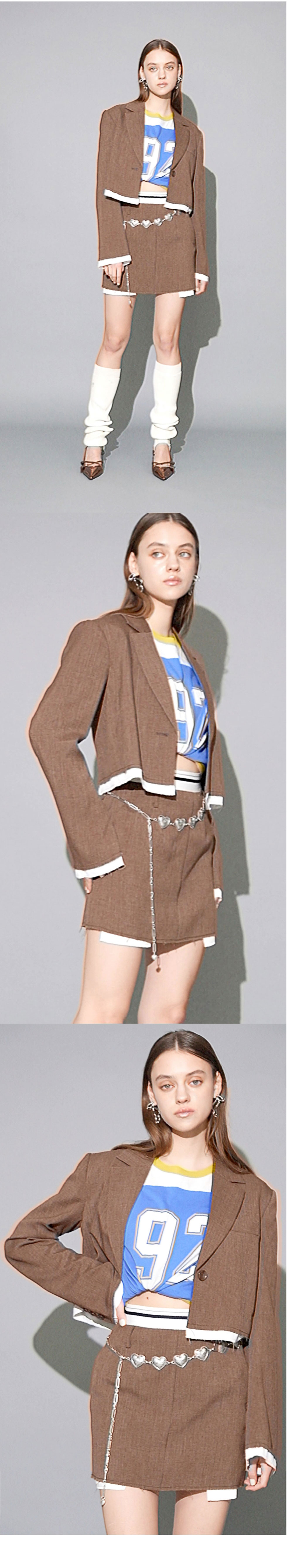 袖口と裾に切りっぱなしディティールを取り入れ、 あえて裏地を出すことで今季らしい雰囲気のあるリメイクデザイン。 ジャケットとスカートのセットアップスタイリングが一押し。