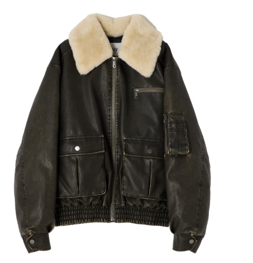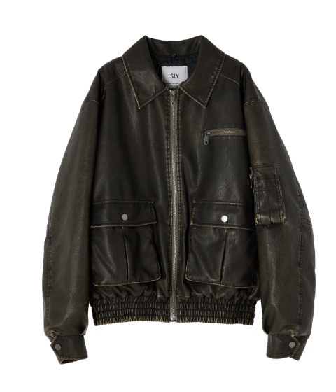 雰囲気のあるエイジング加工を施したヴィンテージ感漂う風合いがポイントのフェイクレザーブルゾン。
