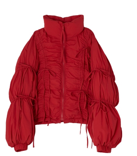 全体的にギャザーリボンディテールを施したデザイン性の高いパッファージャケット。