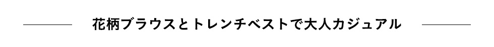 目を惹くレトロなフラワー柄のブラウスと合わせて大人カジュアルな春コーデに
