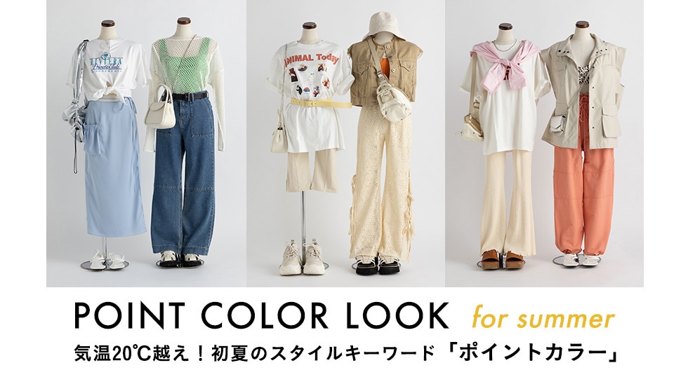 連日20℃超えの日々が続く近ごろ。シンプルになりがちな初夏コーデには鮮やかなポイントカラーを取り入れて夏仕様にアップデート。アイボリーやベージュなどのナチュラルカラーをベースにカラーをポイント投入するのが、バランスが取りやすくまとまりも出るのでおすすめ。
