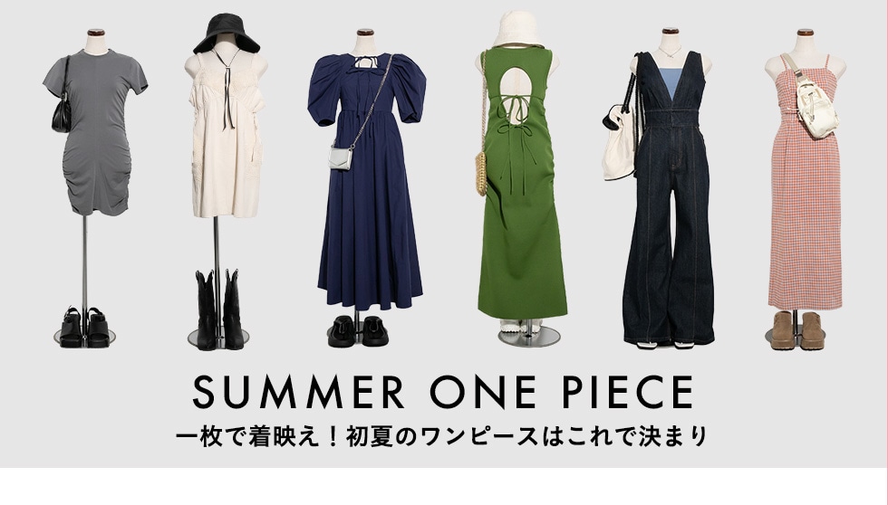 ロング丈からミニ丈、オールインワンまで豊富にラインナップ。いち早く夏をまとってお出かけを楽しみましょう♪